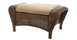 6. A Beacon park brown wicker Outdoor patio ottoman with standard toffee trellis tan cushions set comes in a powder-coated rust-resistant steel frame that offers durable support. All-weather wickers withstand the elements and can be wiped clean with a damp cloth.